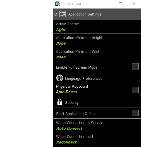 This applies to the Desktop Client only. It is not present on Android, iOS, or Windows CE systems. An Application Minimum Height value helps restricts the screen from being resized below the values set here so the applications isn't "lost" because its too small to find. All values are in pixels.