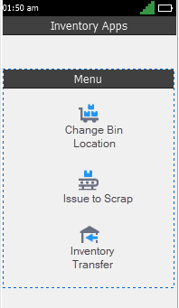 This control allows you to arrange the look and feel of applications menus and is also designed to work with the RFgen Menu and Roles objects in the Solution Explorer pane. Once you design details such as the menu arrangement style type, you can also visualize how it will look on a device when populated with all the menu items in the Menu Simulation section of Menus and Roles.