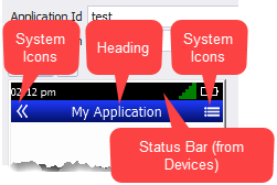 The screen’s sizing, automatic translation, number of displays (display types), and look and feel are only controlled by the properties in the form. The form’s heading, display of the menu icon= and\or back button < and the menu’s appearance and interactive behaviors are controlled in Mobile Themes and by the properties in the Form.