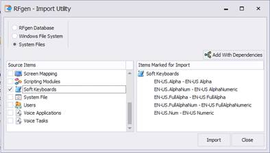 - In the Source Items panel, expand Soft Keyboards, and check the the specific Keyboard(s) to be imported.