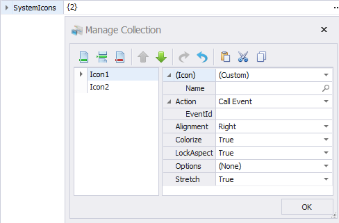 a. On the Form: System Icons: Manage Icons Collection > (Icon) = (Custom)